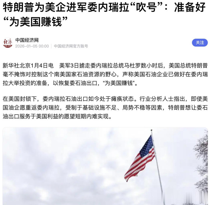 就在他接受专访前两日,美国刚派兵控制委内瑞拉总统马杜罗,特朗普便喊话本国油企 “去委国赚钱”,当美国不顾国际规则争抢石油资源时,中国已用技术创新给出了能源发展的全新答案。
